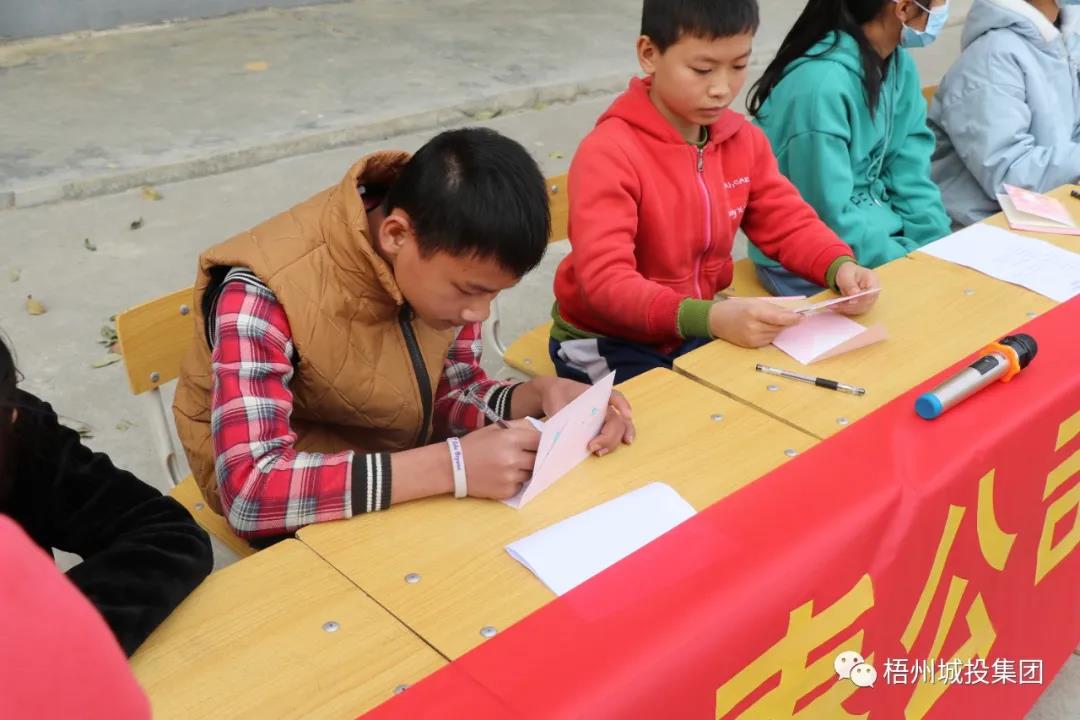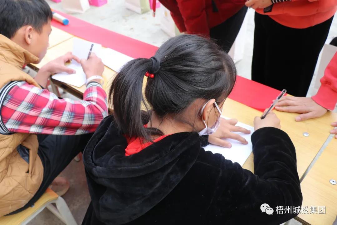 最后,志愿者和孩子们一起填写了新年愿望卡,给孩子们送上书包、笔、作业本、节日点心等礼物,希望他们在新的一年里学习进步,健康快乐的成长。