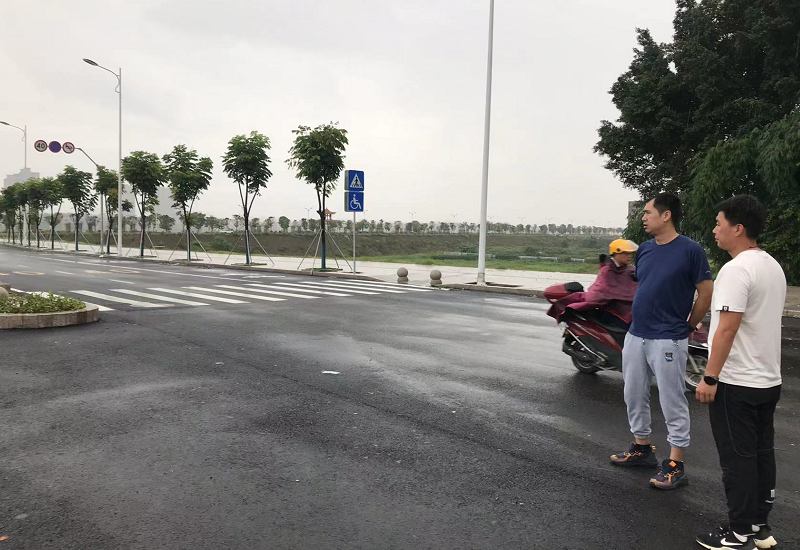 工作人员在南岸路网4号取土点和高旺路进行检查,查看雨后项目情况