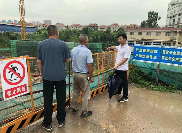 工作人员在长洲岛棚户区项目现场查看雨后安全生产情况