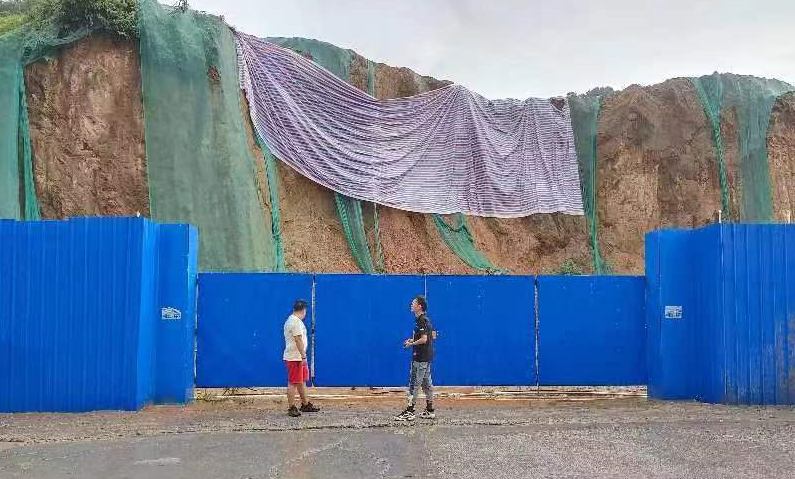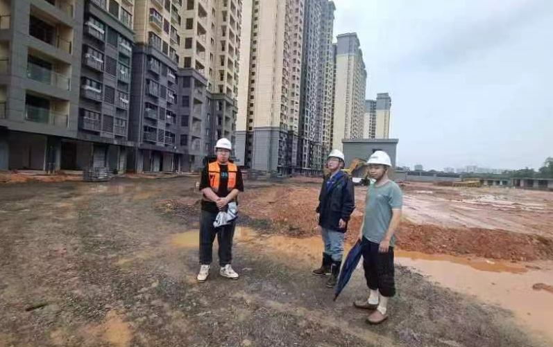 强降雨后工作人员在两龙安置点1项目现场进行安全检查