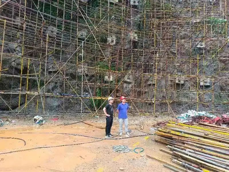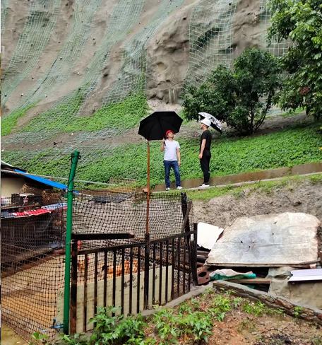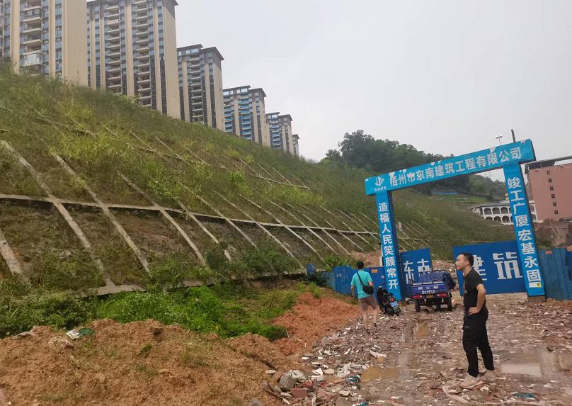 图片工作人员在长洲区政府后山边坡治理现场巡查排水情况