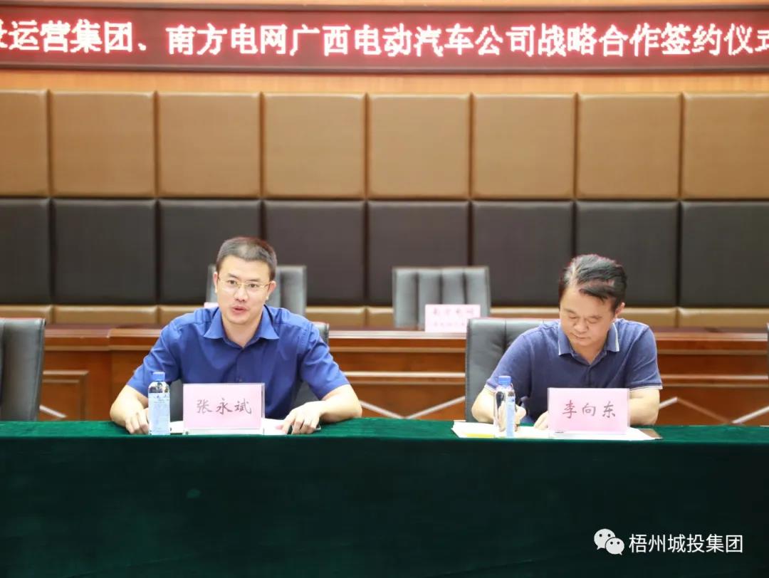 市小新专属集团总工程师、运营集团董事长张永斌,运营集团副总经理李向东,广东电动汽车服务有限公司副总经理黄富凡参加签约仪式。李向东、黄富凡代表双方进行项目签约。